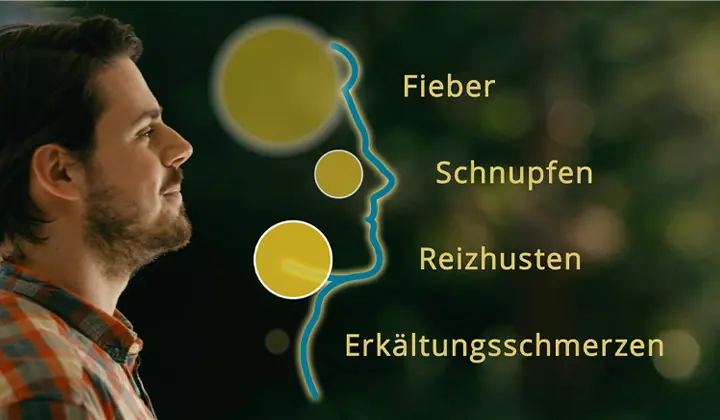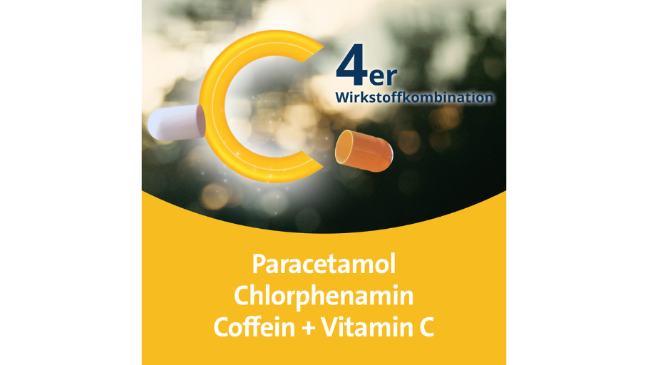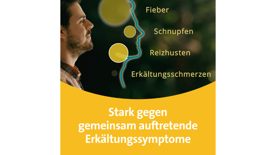 - Lindert schnell gemeinsam auftretende Erkältungssymptome (Husten, Schnupfen, Erkältungsschmerzen und Fieber)